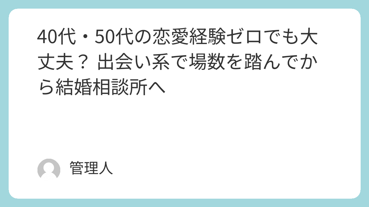 ここで述べた『経験不足で相談所に挑むリスク』は、40代・50代に限った話ではありません。20代・30代でも女性経験が乏しい男性には同じことが当てはまります。若いうちに出会い系で場数を踏んでおけば、将来の婚活を格段に有利に進められるでしょう。